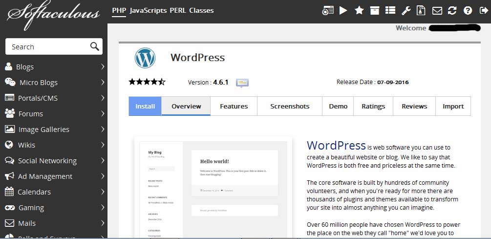 Menginstal Aplikasi/CMS melalui Softacolous Apps Installer