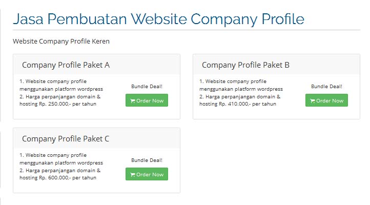 3. Pada halaman Jasa Pembuatan Website Company Profile, pilih salah satu Order yang anda butuhkan.