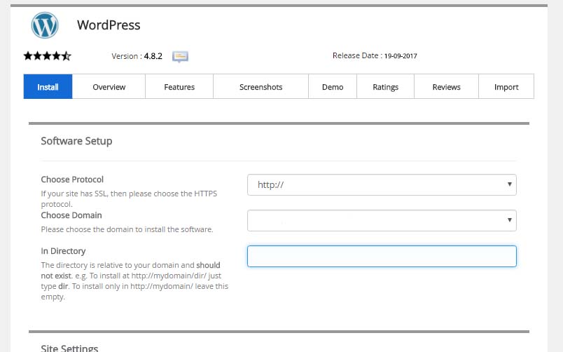 7. Lalu anda masuk ke kolom isian setting web anda, pada Sofware Setup di Choose Protocol biarkan tertulis http://, pada Choose Domain sudah terisi nama domain anda maka biarkan saja, kosongkan isian pada In Directory.
